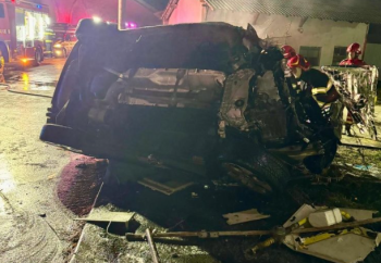 Tragedie în Găești: doi tineri de 18 și 19 ani au murit după ce mașina în care se aflau a intrat într-o clădire și a luat foc