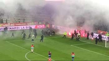 Meci BRUTAL: 17 eliminări, antrenor cu capul spart și gaze lacrimogene pe teren!