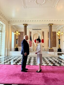 Prima femeie premier a Japoniei îl face pe Trump fericit: îi face cadou o trusă de golf. Urmărește primirea fastuoasă a Președintelui SUA în Tokyo