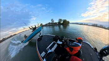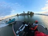 Două bărci s-au ciocnit frontal la un concurs de pescuit, în Delta Dunării. Un om a fost aruncat în aer la impact. VIDEO