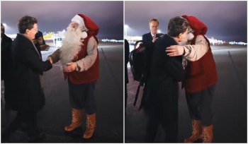 Moment inedit în Finlanda: Nicușor Dan, întâmpinat de Moș Crăciun la coborârea din avion