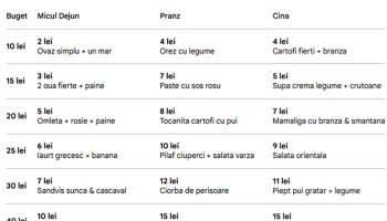 TABEL | Ce se mănânci la micul dejun, prânz și cină, în funcție de bugetul zilnic: de la 10 lei la 200 lei de persoană
