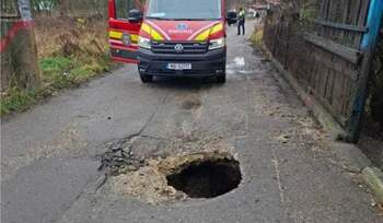 Doi oameni au căzut într-o groapă din asfalt în Petroșani, după ce strada s-a surpat. Craterul are peste 1 metru adâncime