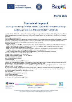 S.C. MBC DESIGN STUDIO SRL a obținut o finanțare prin Programul...