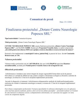 Finalizarea proiectului „Dotare Centru Neurologie Popescu SRL”