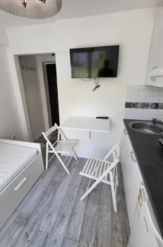 Un om locuiește într-o casă cu lățimea de 63 cm. Are bucătărie, baie, dormitor și birou