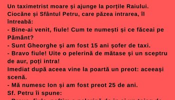 Bancul începutului de săptămână | „Vezi, dragul meu, noi aici în Rai primim pe criterii de performanță”