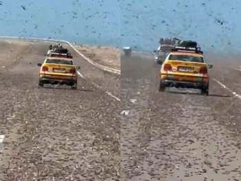 Panică pe autostradă! Un stol de lăcuste i-a speriat pe șoferi
