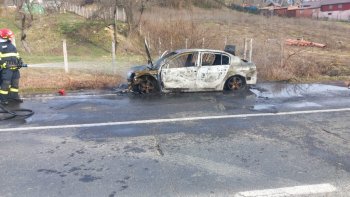 Mașină făcută scrum în Vâlcea: incendiu violent izbucnit în această dimineață