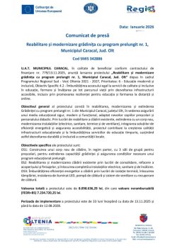 Reabilitare și modernizare grădinița cu program prelungit nr. 1, Municipiul Caracal, Jud. Olt
