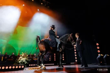 Mihai Bendeac, surpriza serii la gala aniversară a lui Florin Piersic. Actorul a apărut pe scenă călare pe cal, iar momentul a stârnit hohote de râs