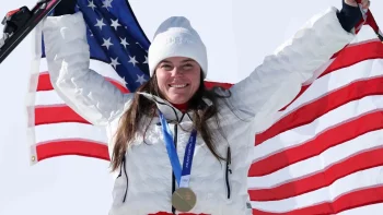 VIDEO Breezy Johnson a câștigat aurul olimpic la coborâre, dar și-a rupt medalia la festivitatea de premiere