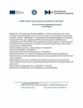 Anunț Finalizare implementare proiect DIGI DIAMET