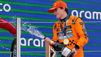 Pilotul australian al McLaren, Oscar Piastri, și managerul său,...