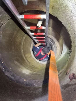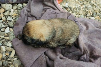 Doi căţeluşi care au căzut într-o conductă de canalizare...