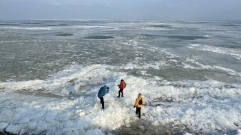 GALERIE FOTO A înghețat cel mai mare lac din România / Imagini spectaculoase cu gheața de pe Razelm și canalele sloi de la Jurilovca