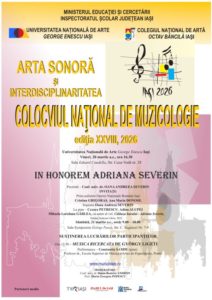 Vineri, 20 martie 2026, de la ora 16.30, Sala Eduard Caudella (str. Cuza Vodă nr. 29) FESTIVITATEA DE DESCHIDERE Va include prezentarea volumului Studii de muzicologie XXI, ediție îngrijită de (…)
