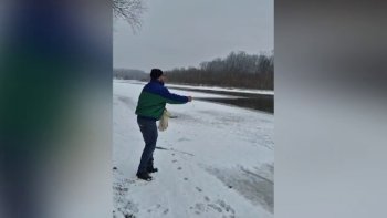 Animalele care s-au adunat pe malul înghețat al Prutului, în Botoșani. „Nu recomandăm, sub nicio formă, să se ajungă în zonă”