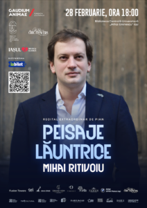 Pianistul Mihai Ritivoiu prezintă „Peisaje lăuntrice”, în stagiunea camerală a Fundației Culturale Gaudium Animae Recital extraordinar de pian, pe 28 februarie 2026, în Aula Bibliotecii Centrale (…)